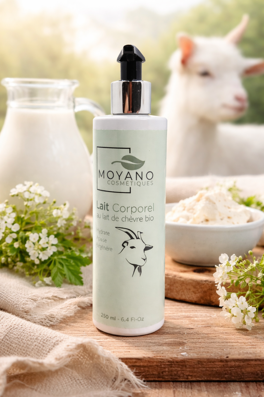Découvrez notre lait corporel au lait de chèvre bio, une crème onctueuse et naturelle, spécialement conçue pour hydrater et nourrir votre peau en profondeur. Enrichi en ingrédients biologiques, il apaise et adoucit, tout en respectant l’équilibre naturel de la peau. Parfait pour tous les types de peau, il laisse une sensation de douceur et de confort durable. »